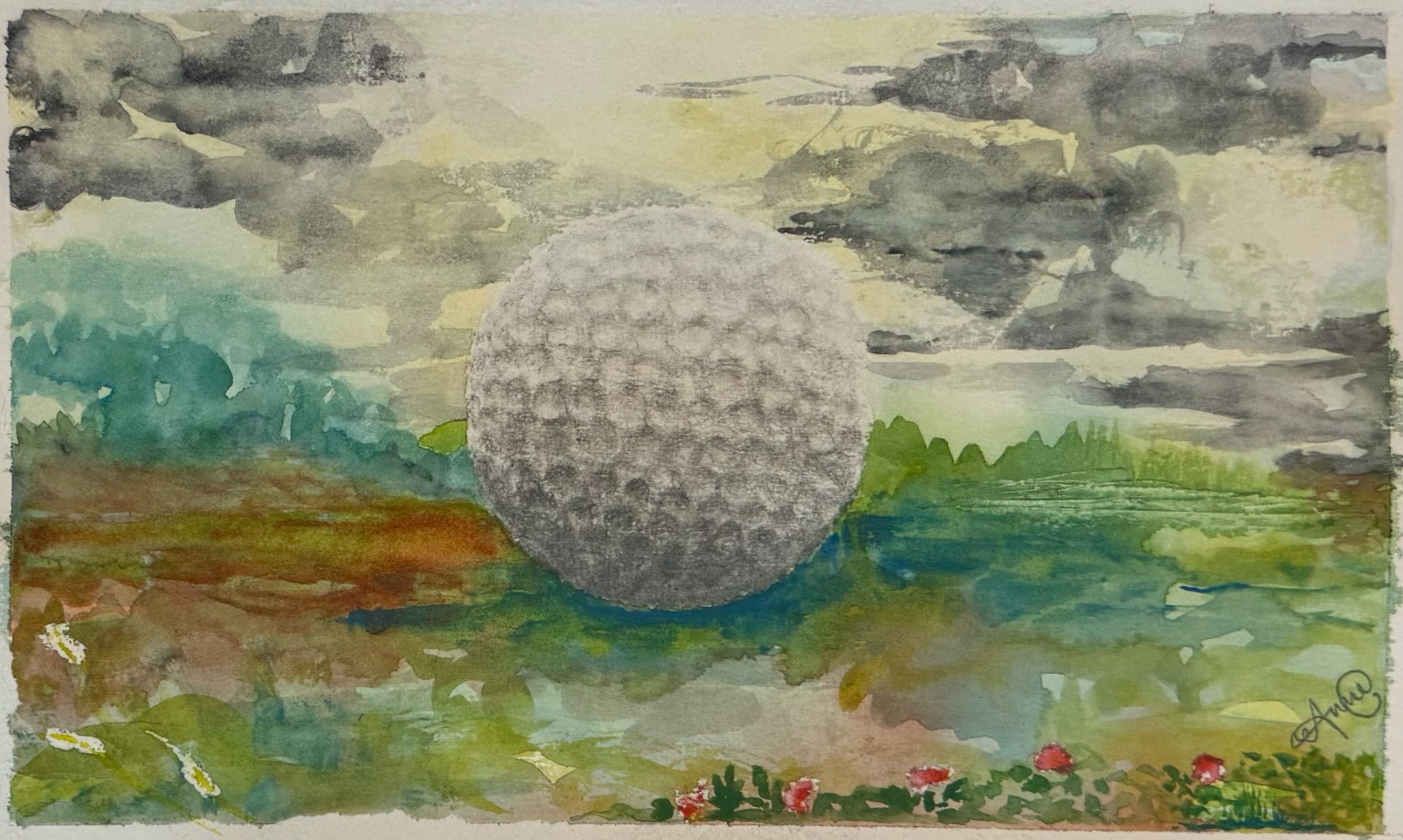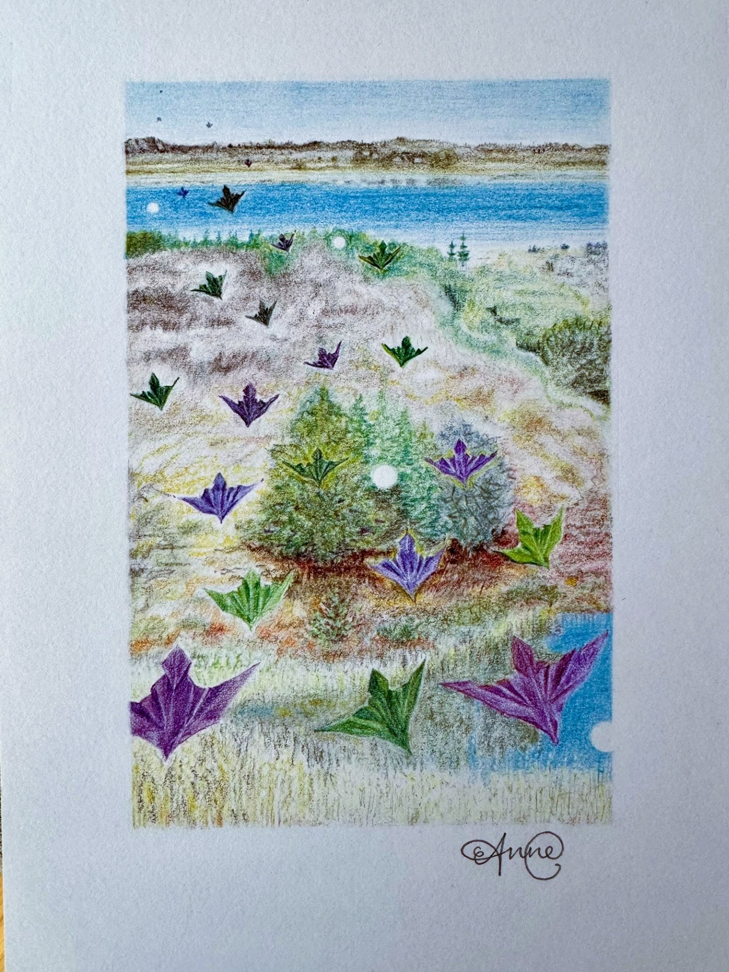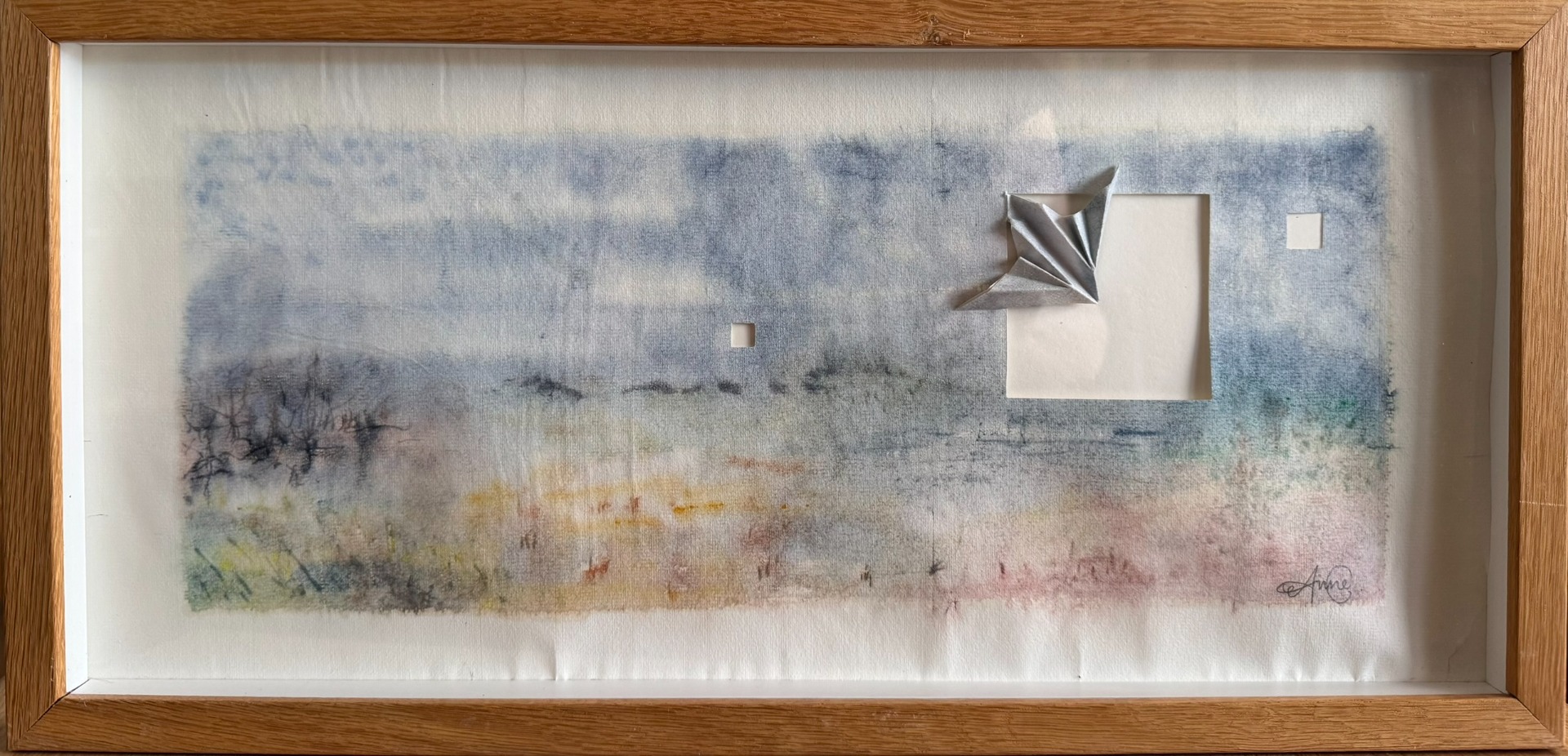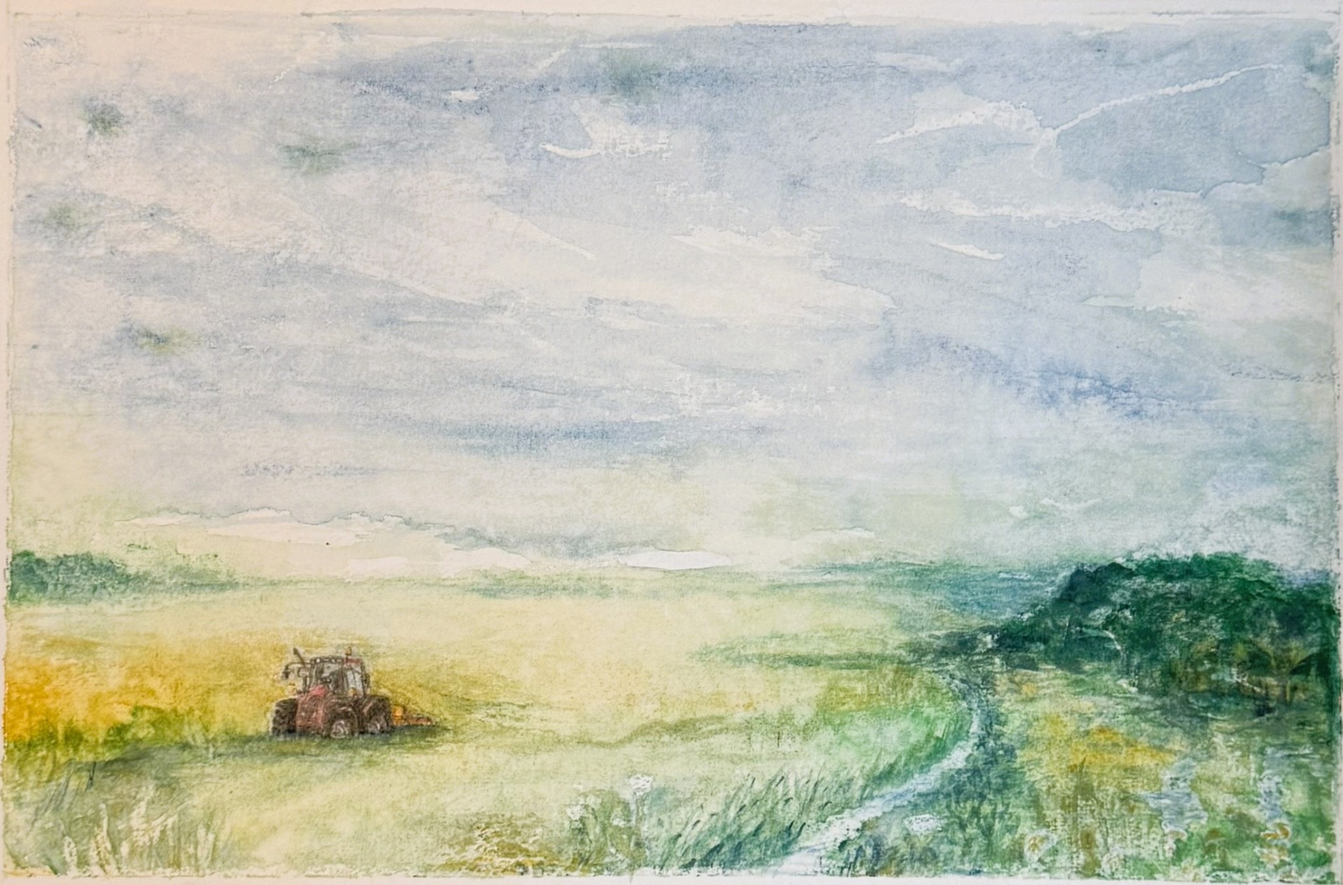 -Det er nogle smukke landskabsakvareller, Anne C laver. Umiddelbart ser de ret traditionelle ud, men oftest er der trukket et element frem, der driller beskueren.