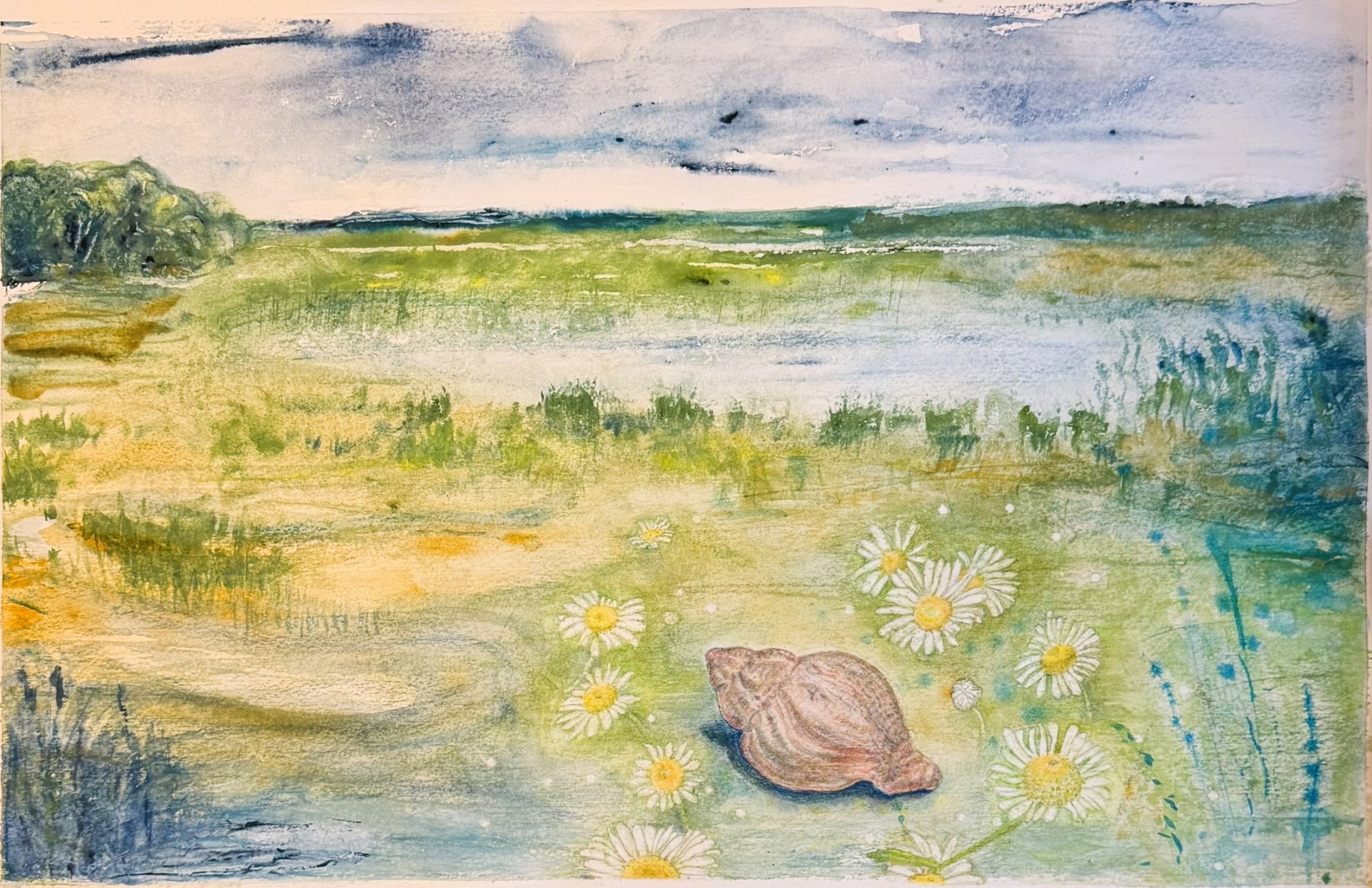 Akvarel og blyant på papir, 2025